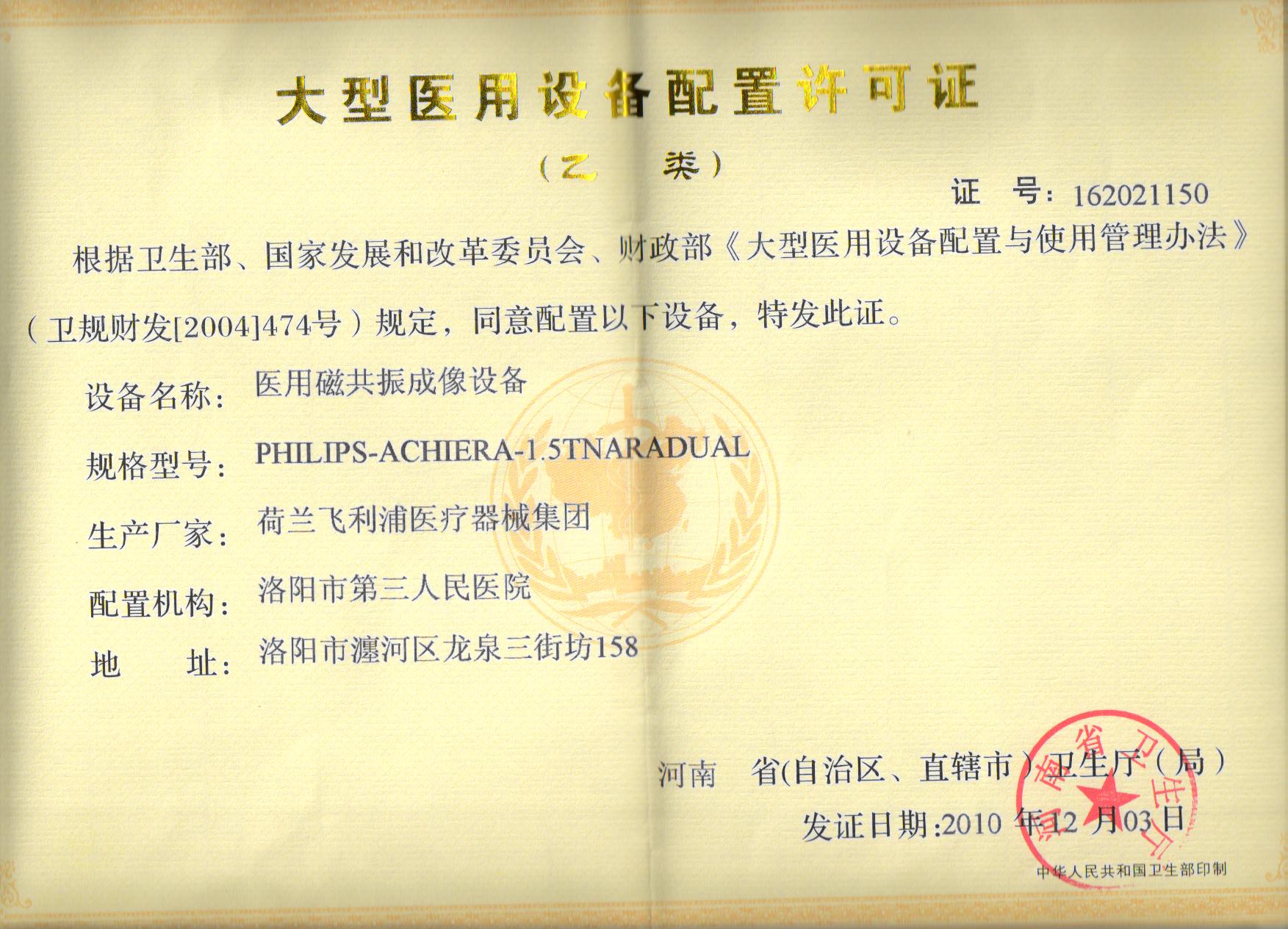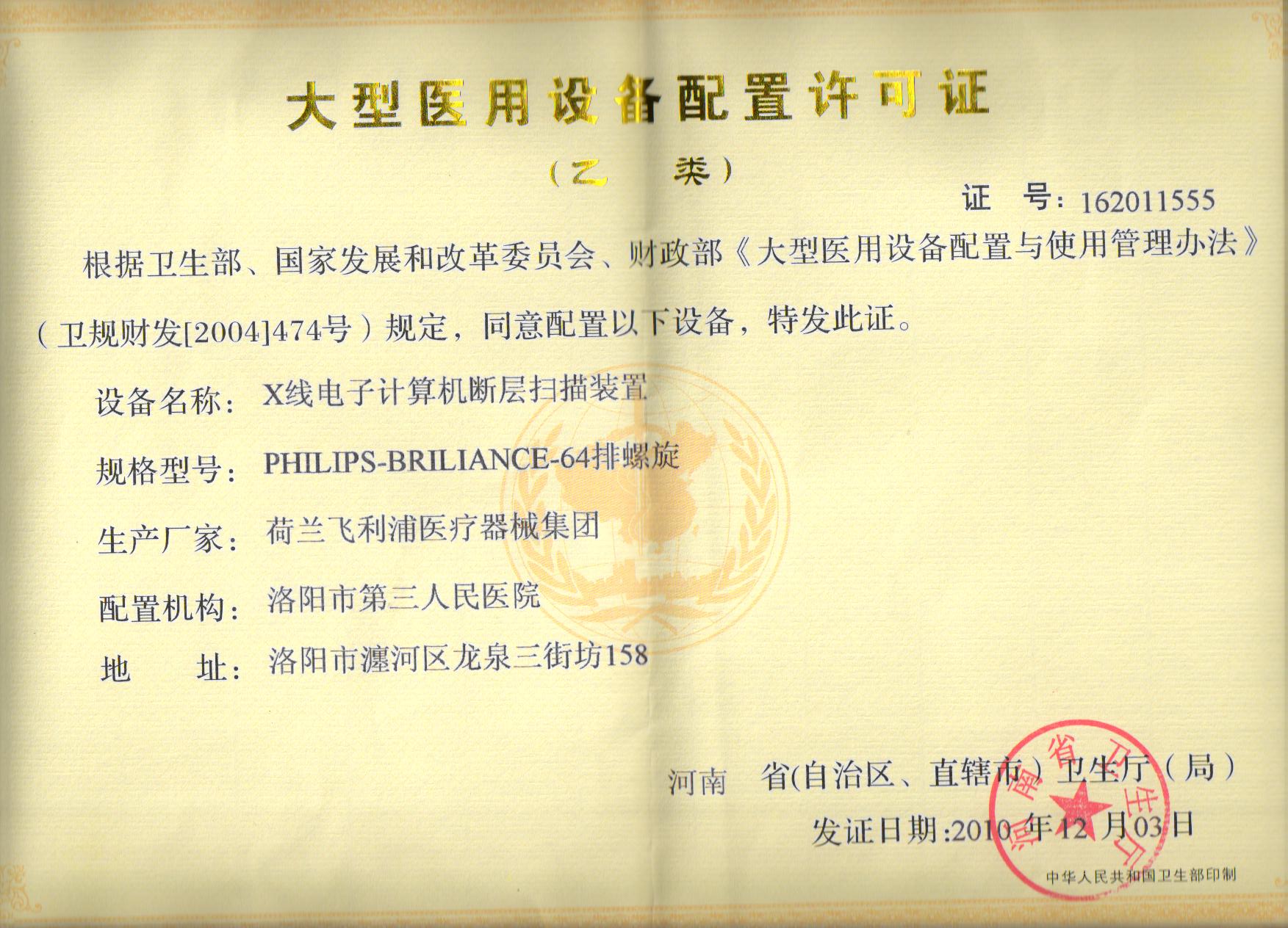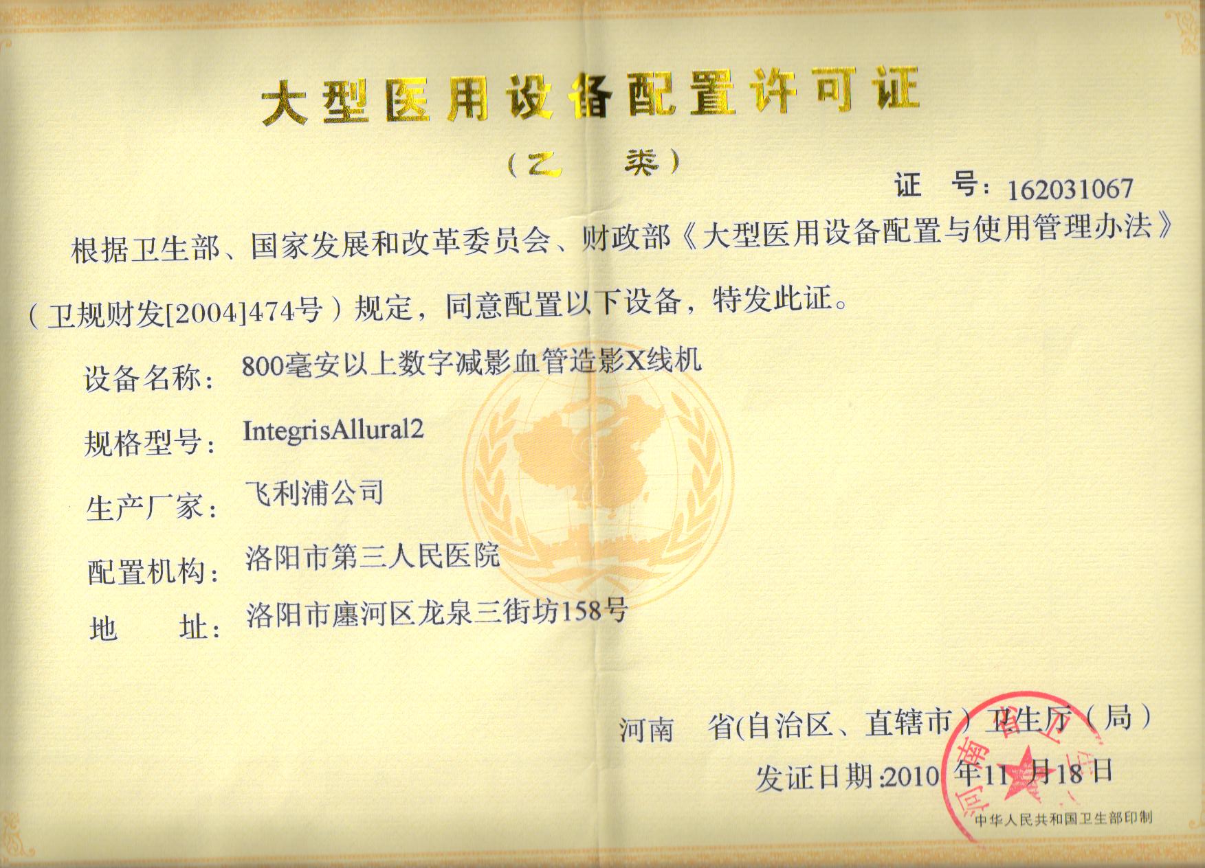 大型设备配置许可证