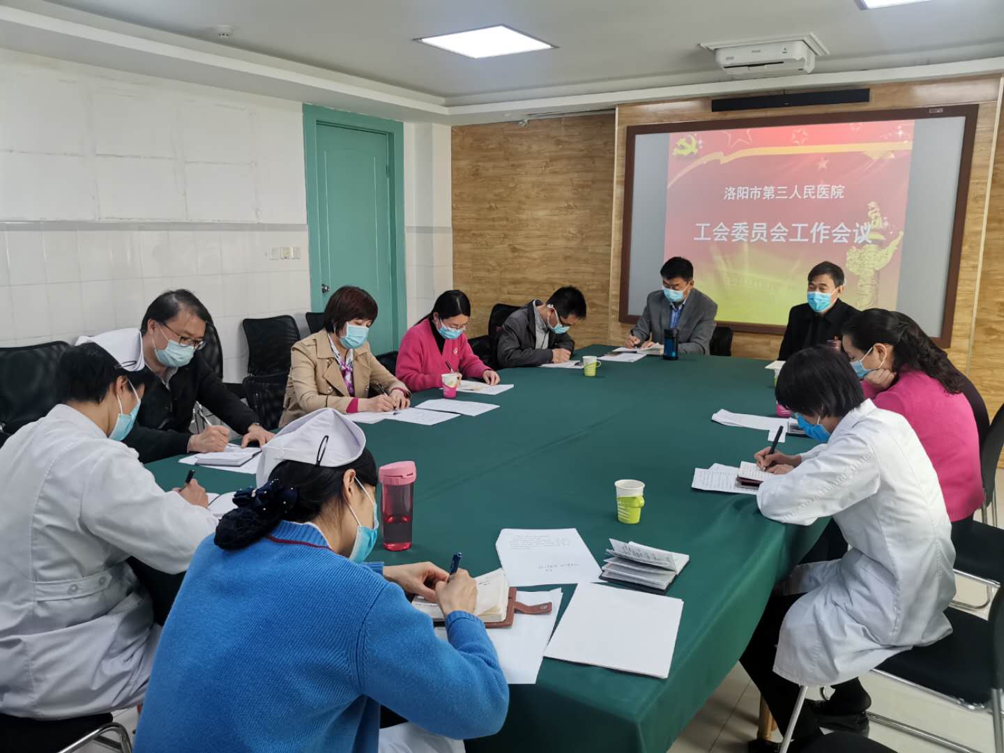 3月20日上午,院工会主席段言文在门诊5楼会议室,主持召开了工会工作会议,参会的工会委员会委员、经费审查委员会委员、女工委员会委员,对工会2020年重点工作进行了交流讨论,并就工会重点工作如何服务职工、服务医院中心工作、关爱关心职工进行了安排部署。