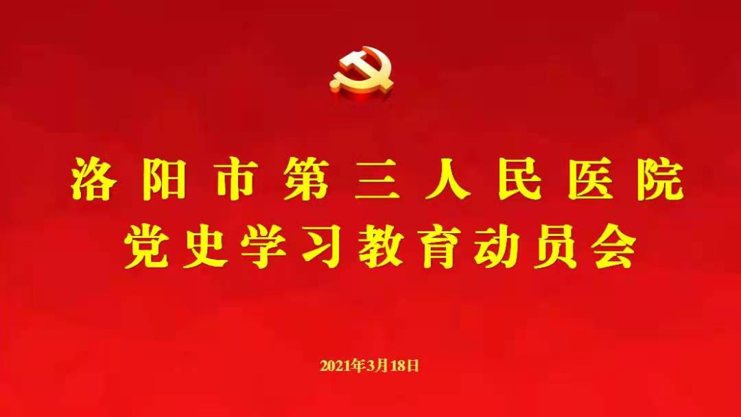 3月18日下午,洛阳市第三人民医院(洛阳职业技术学院第一附属医院)在门诊6楼学术报告厅召开党史学习教育动员会,学习贯彻习近平总书记在党史学习教育动员大会上的重要讲话精神,贯彻落实省委、市委、市卫健委党组和职业技术学院党委关于党史学习教育的工作要求,医院党史学习教育工作全面启动。医院党委书记马伟同志进行动员讲话,院领导班子成员、各党支部书记、中层干部及党员代表参加了会议。