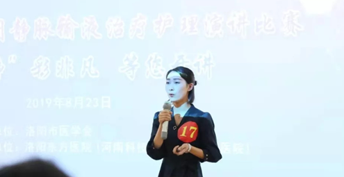 2019年8月23日,洛阳市医学会静脉输液专业委员会举办的“2019洛阳市首届外周静脉输液治疗护理演讲比赛”在东方医院举办,来自洛阳市县级医院共25名选手参加比赛,我院血液老年医学科陶清姣通过精美的PPT制作、大方富有魅力的舞台展示分享了静脉治疗的感悟,并斩获本次比赛“最佳风采奖”!