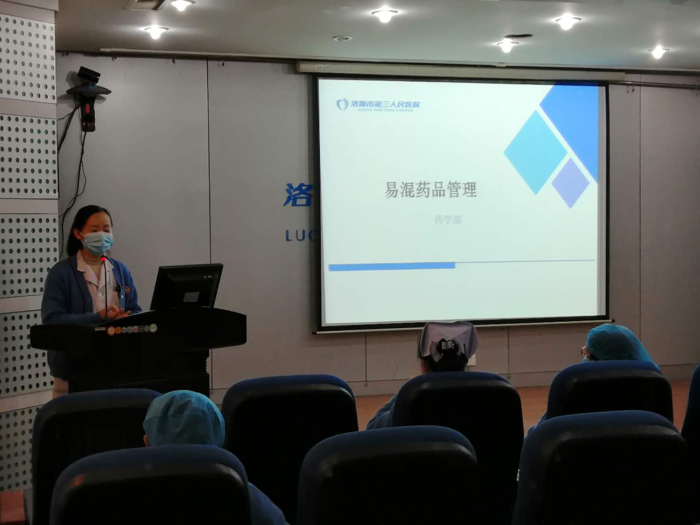 2020年4月10日下午在洛阳市第三人民医院门诊六楼举办了“2020年核心制度在工作中有效落实”的系列活动:护理部进行安全警示教育;药剂科对护理人员进行药品管理方面的知识培训,使大家在工作中更加认真、仔细、用心,让安全的警钟在大家的心中长鸣。