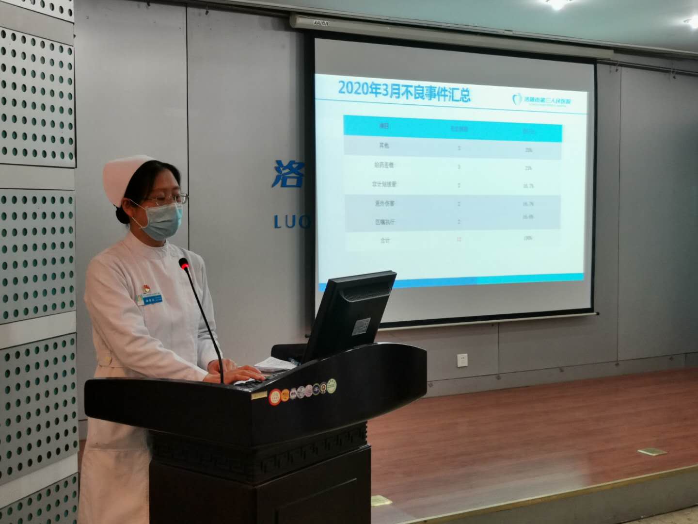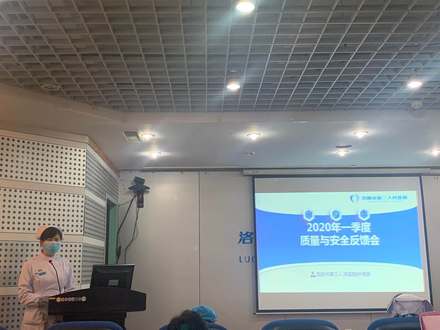 为切实保障患者安全,达到护理质量持续改进的目的,洛阳市第三人民护理部于2020年4月13日下午在医院门诊六楼召开了2020年第一季度质量与安全反馈会,各专业小组组长及护理质量三级质控人员以图文并茂的形式就第一季度各个科室存在的亮点及问题进行了反馈,大家一致认为,通过反馈,使每个科室看到了各自存在的不足以及其他科室的可取之处,大家都怀着一颗感恩的心,不断改进工作,相信照此下去,洛阳市第三人民医院的护理工作会越做越扎实。