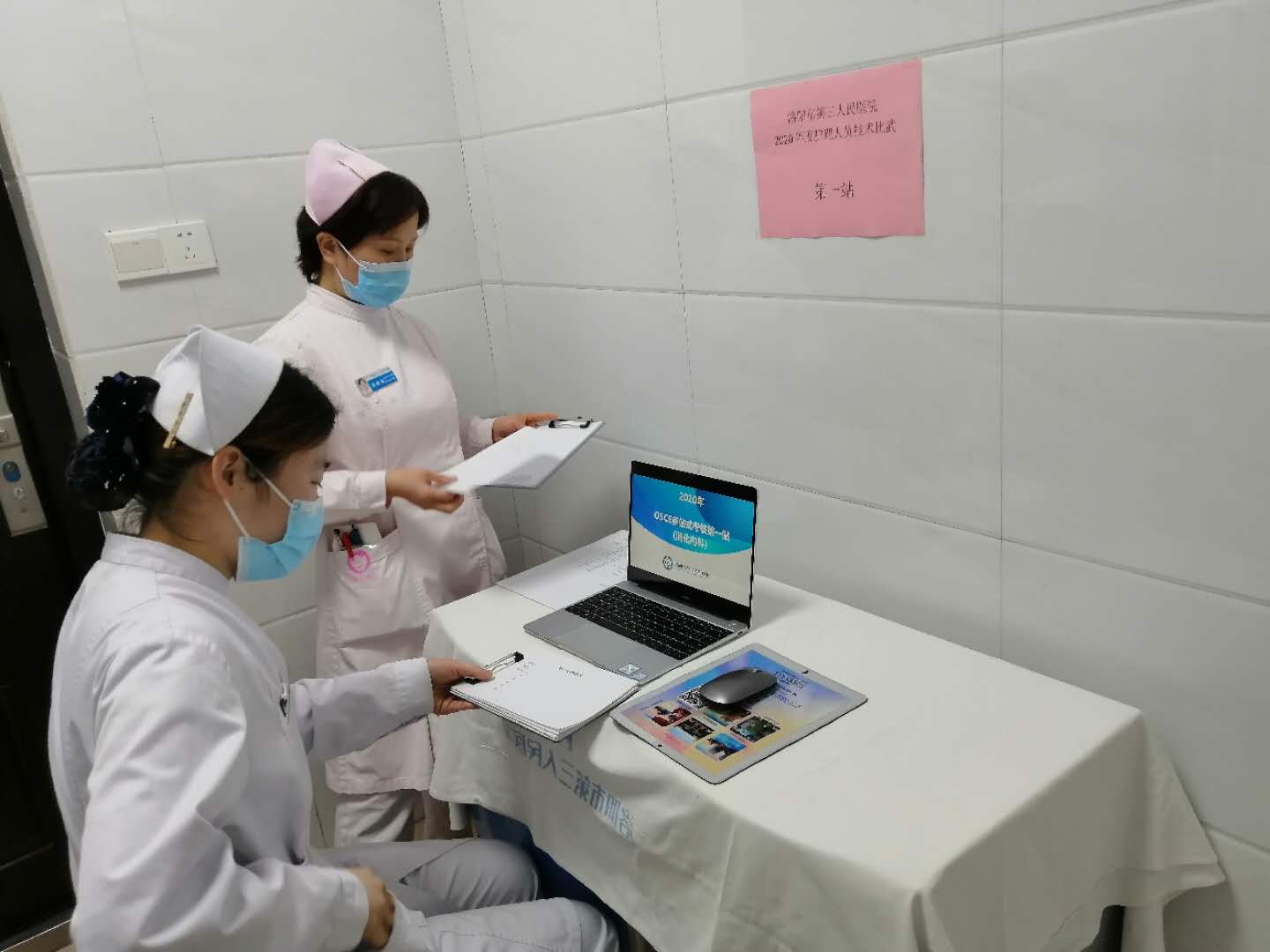 技术比武分为线上理论考核、多站式临床思维及技能考核两部分,分别于2020.4.22、4.23日在门诊六楼及儿科监护室进行,选手们都是从各个病区选拔出的优秀人员,选手们积极准备,监考老师严格考核,马院长及段主席现场指导,铺就了我院为提高护理人员综合素质的全新画面。
