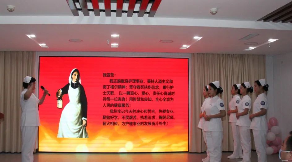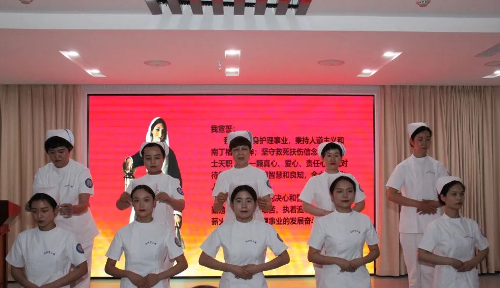 表彰结束后,举行了新入职护士传光授帽仪式,并由骨科护士长、伤口小组组长樊晓华带领大家进行宣誓。“我宣誓:我志愿献身护理事业,坚定救死扶伤的信念,尊重病人的权利,履行护士的职责……”一句句誓言掷地有声,在摇曳的烛光中荡漾,表达着为护理事业奋斗终身的决心,让人感受到这份职业的崇高。