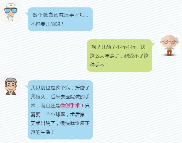听到这个消息,老先生和家人都非常高兴,像是遇到大救星一样。到医院询问,得到肯定答复后,便马上办理住院手续。完善相关检查,排除颅内占位性病变后,随即便安排了微创球囊压迫手术,术后疼痛立刻消失,第三天就顺利出院了。