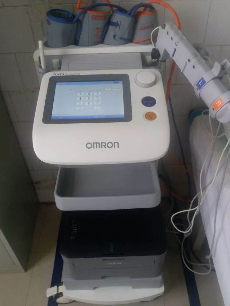 心血管诊疗中心目前引进一台进口欧姆龙动脉硬化检测仪,检查结果的动脉硬化程度分为临界值,轻度,中度,重度动脉硬化,可指导用药,精准度高,同时筛查出大量下肢血管闭塞的患者,精准程度高。