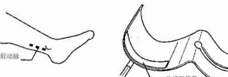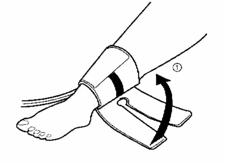 2、脚踝箍带上有一只传感器箍带,用于检测脉搏,裹箍带时,要使传感器箍带接触,到脚踝处的胫后动脉。