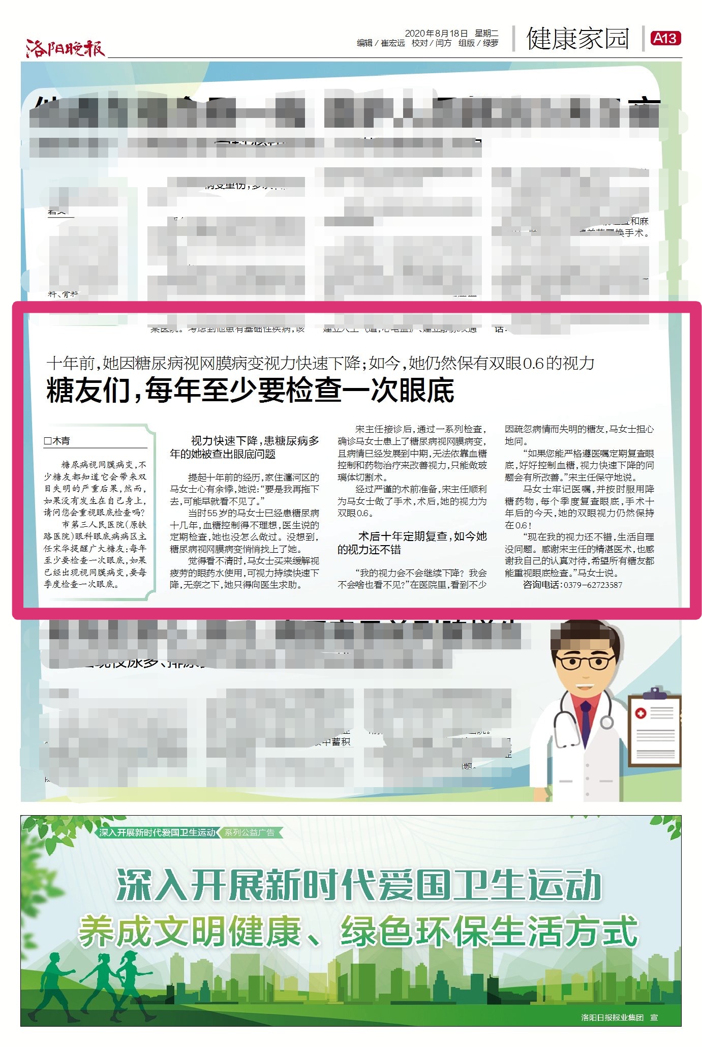 《洛阳晚报 健康家园A13》:糖友们,每年至少要检查一次眼底