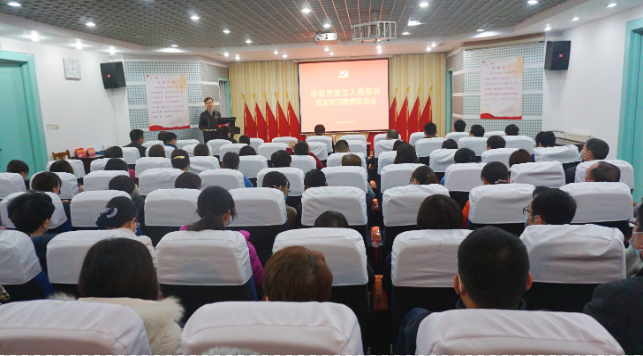 3月18日下午,我院在门诊6楼学术报告厅召开党史学习教育动员会,学习贯彻习近平总书记在党史学习教育动员大会上的重要讲话精神,贯彻落实省委、市委、市卫健委党组和职业技术学院党委关于党史学习教育的工作要求,医院党史学习教育工作全面启动。医院党委书记马伟同志进行动员讲话,院领导班子成员、各党支部书记、中层干部及党员代表参加了会议。