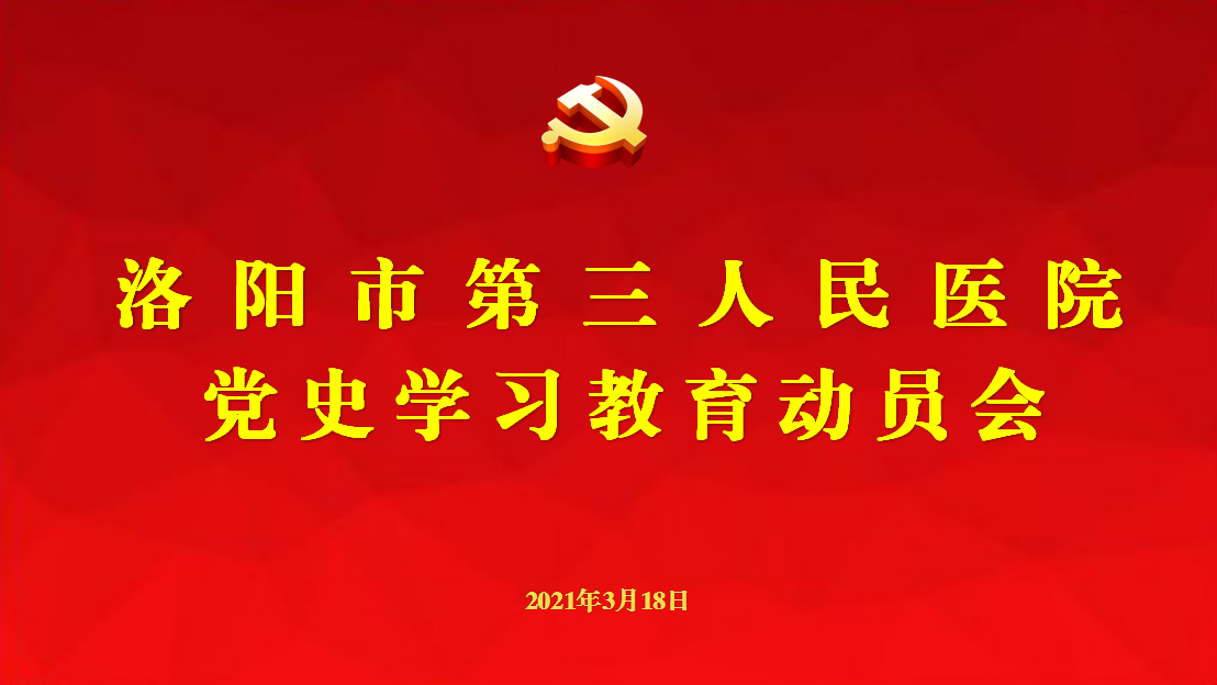会议要求,全体党员干部职工要提高站位,把思想和行动统一到习近平总书记重要讲话精神上来,将扎实开展好党史学习教育,同中国共产党成立100周年庆祝活动结合起来,同巩固深化“不忘初心、牢记使命”主题教育成果结合起来,同推进医院高质量发展的重点工作结合起来,为建设三级甲等医院和健康洛阳而不懈奋斗。