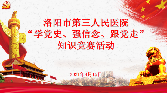 4月15日下午,我院在门诊6楼学术报告厅举办了“学党史、强信念、跟党走”知识竞赛活动,各党支部书记、党员、团员、职工代表共计50余人参加了竞赛活动。