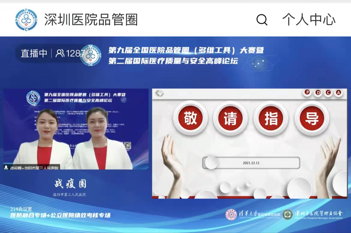 12月12日,洛阳市第三人民医院付小霞带领的战疫圈《基于循证构建新冠肺炎标本采集管理体系》在全国第九届医院品管圈大赛中获得医防融合专场三等奖。