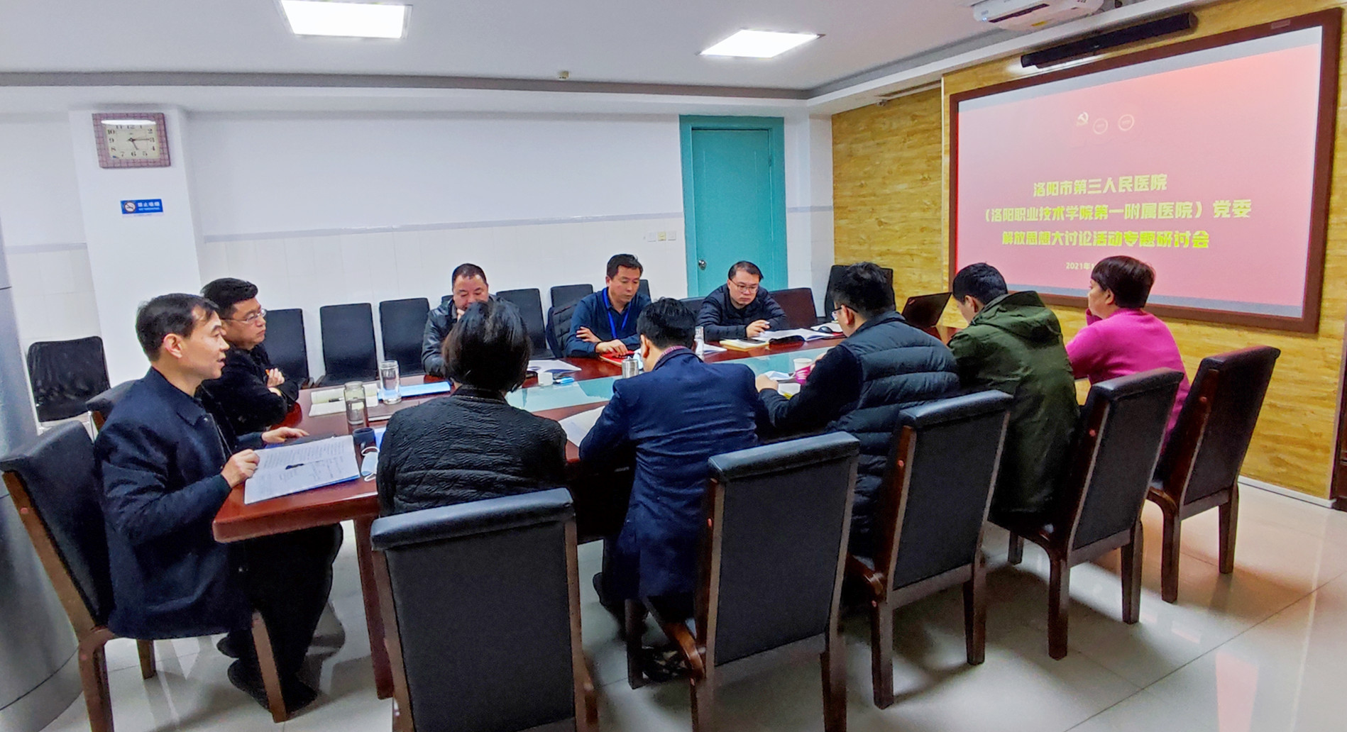 为深入推进党史学习教育,学习贯彻党的十九届六中全会精神,全面落实省市党代会精神,按照市委、市卫健委党组和洛阳职业技术学院党委关于开展解放思想大讨论活动的部署要求,12月24日下午,院党委组织召开解放思想大讨论活动专题研讨会。