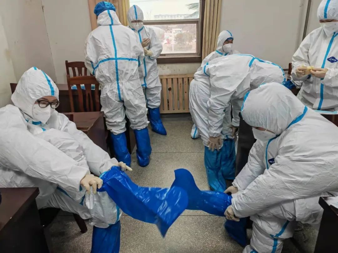 作为第一个到达新安县的支援医院,医务人员在车上再次开展了防护用品使用方法的培训,到达集合点后,立即投入到核酸采样工作中。