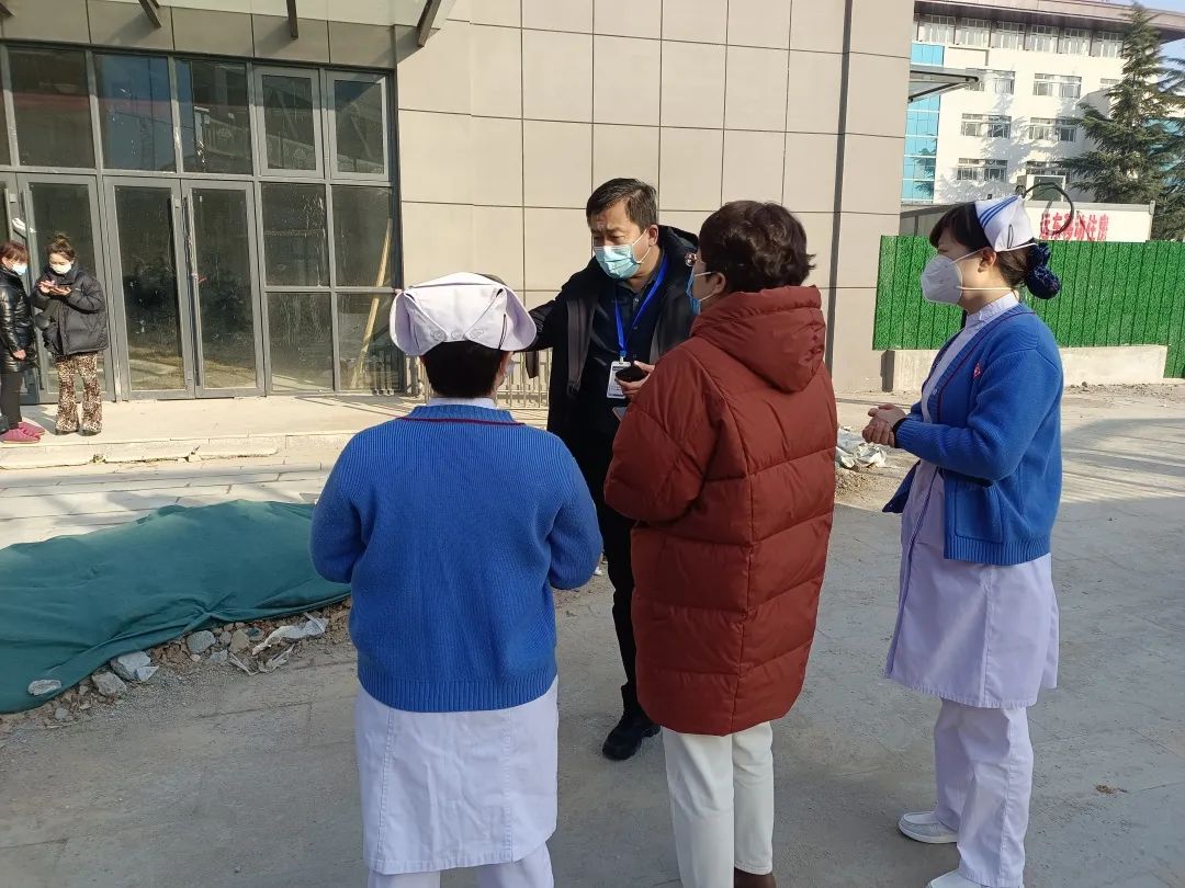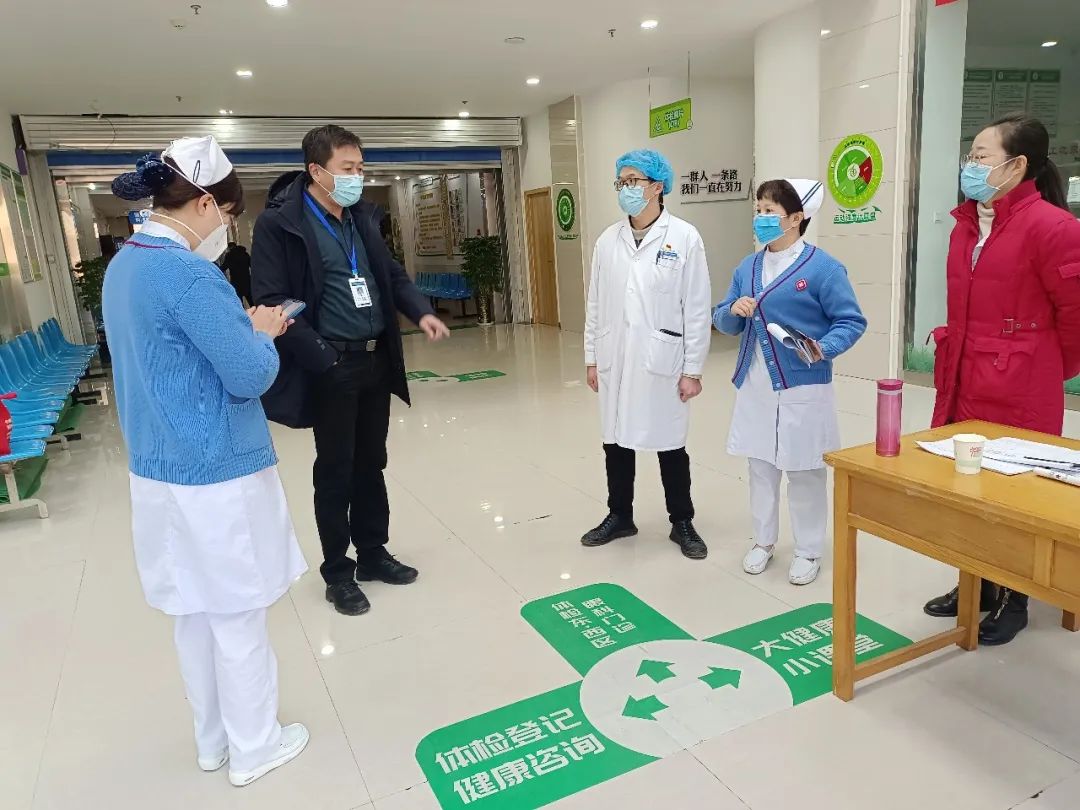 1月1日上午,副院长郭建峰带领护理部主任陈春霞、感染管理科王瑞敏、门诊部刘昌,门诊护士长徐娅娟、监察室陈海燕对普通门诊、急诊科、发热门诊、核酸检测点、南北院大门门岗、体检科、眼科医院进行疫情防控督导。
