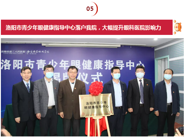 4月10日上午,洛阳市青少年眼健康指导中心揭牌仪式在我院举行,洛阳市教育局副局长席建强、洛阳市卫健委四级调研员邹先鹏、洛阳职业技术学院副院长张志友、洛阳市红十字会秘书长郑瑞生、洛阳市教育局体卫艺术站站长陈刚、院长邢建武、副院长常书锋、郭建峰、许严伟等出席了揭牌仪式,会议由院党委书记马伟主持。该中心由洛阳市教育局主办、我院承办。该中心的成立引起广泛关注,被省政府网站、医药卫生报、洛阳新闻综合频道、洛阳日报、洛阳晚报、网易、新浪网等省市网站、新闻媒体纷纷发布或转载,将为全市青少年眼健康大数据的收集分析、主要危险因素的干预和眼健康公共卫生体系的建立和完善作出积极贡献。