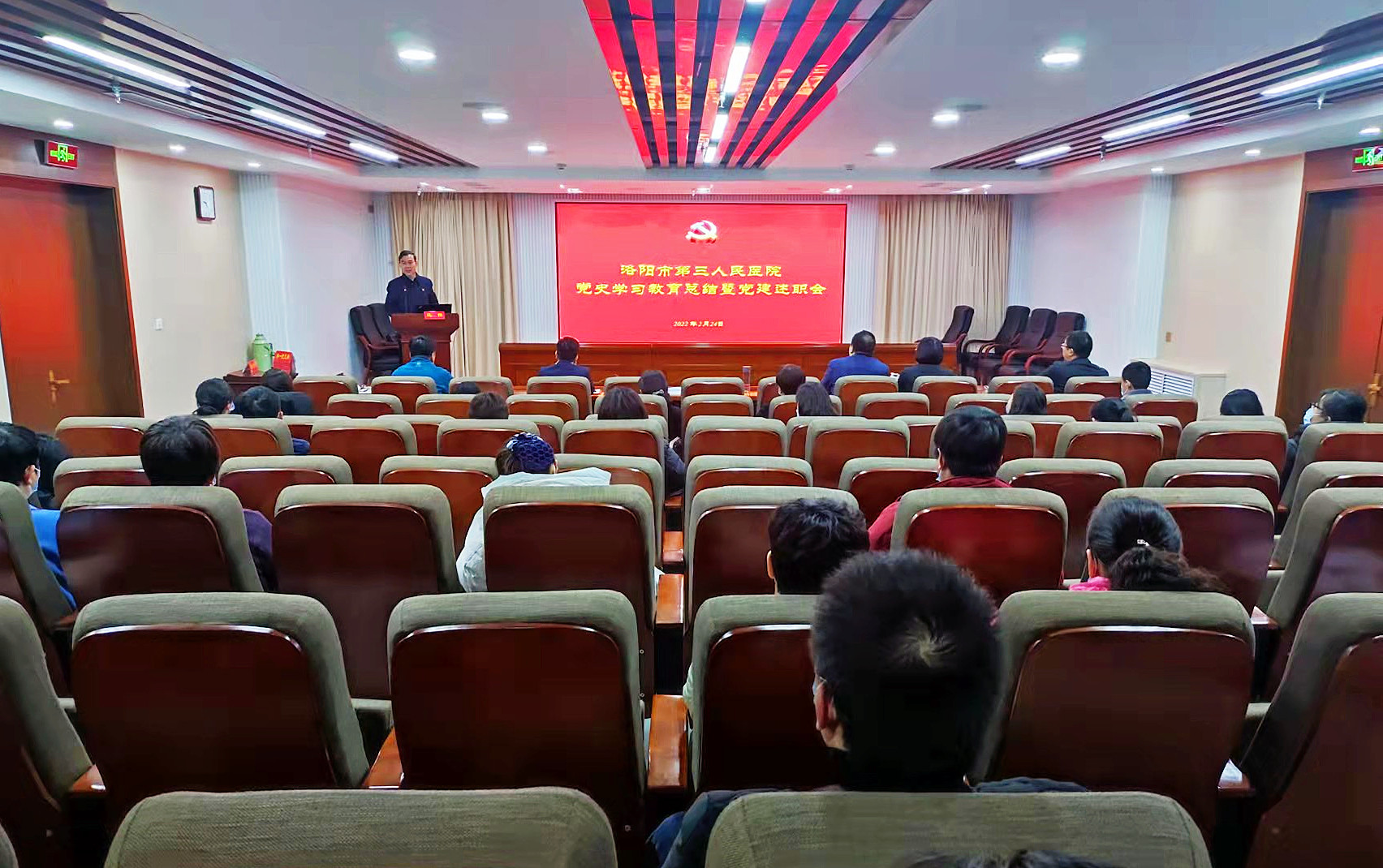 会议组织学习了习近平总书记关于党史学习教育总结工作作出的重要指示:认真总结这次党史学习教育的成功经验,建立常态化、长效化制度机制,不断巩固拓展党史学习教育成果。持续学习贯彻党的十九届六中全会精神,坚持党史学习教育中好的做法,利用红色资源,讲好红色故事,弘扬伟大建党精神和崇高的职业精神,继续为群众办好事、办实事,提高职工和就医群众满意度。以“能力作风建设年”为抓手,提高党员干部的政治能力、专业能力、创新能力、统筹防范能力和群众工作能力,推进实施“13710工作机制”和“四不两直”工作法,克服形式主义、官僚主义作风,把党建工作做实做细做好。探索“党建查房”机制,促进党建与业务管理工作进一步融合,提高党支部和医院纪检监察体系、组织建设体系、思想宣传体系、群团组织体系的组织力、执行力,完善“五星支部评选”和“党员积分制管理”办法,突出医德医风建设和医院文化建设,为医院高质量发展提供坚强的组织和政治保障,以党建工作高质量迎接党的二十大胜利召开。