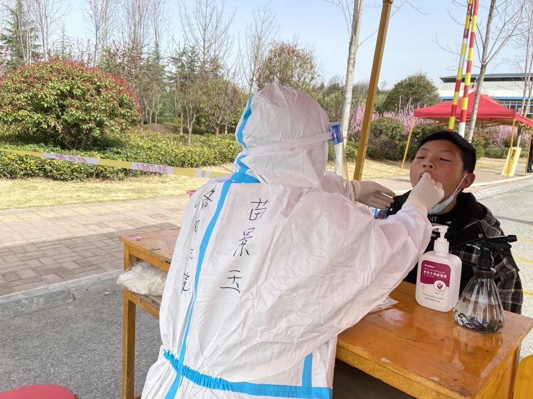 在采样过程中,苗主任不忘自己的专业技术,“你的扁桃体化脓了!”他对前来接受采样的一名小朋友说,并及时给出了治疗方案。
