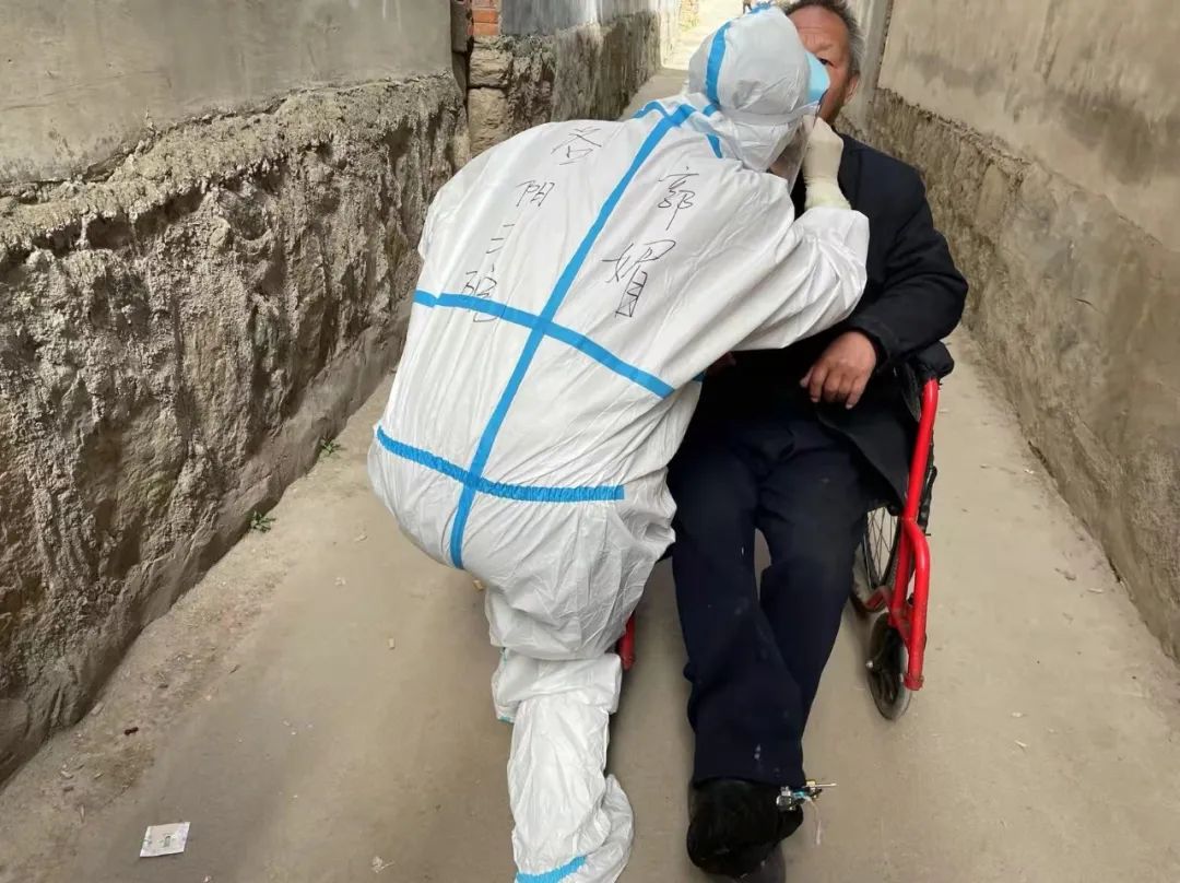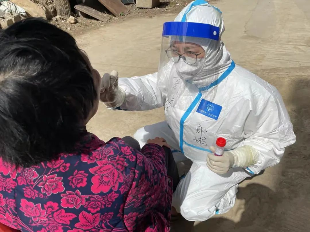 在检测点进行完当天采样任务后,得知还有一些行动不便的老人需要上门采集时,康复医学科主任郭媚说:“我和护士长去!其他人休息。”她背起采集箱来到居民家中,顺利采集完核酸后,老人朴素真诚的道谢:“中午我做了卤面,你们一定要留下来吃饭”。