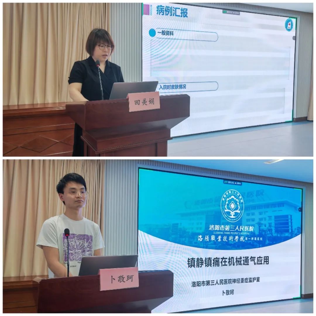 洛阳市第一人民医院RICU护士田美娟分享了重症护理中遇到的疑难病例:急性皮肤衰竭,让我们共同学习了重症护理的新知识;洛阳市第三人民医院神经重症监护室护士呼吸治疗师卜敬珂利用临床案例,理论结合实践,生动的分享了他在平时工作中如何为机械通气患者实施镇静镇痛策略及方案。