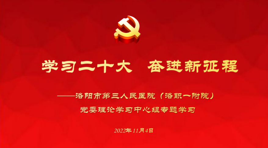董均强调,学习宣传贯彻党的二十大精神是当前和今后一个时期全院上下的首要政治任务,要坚持用习近平新时代中国特色社会主义思想凝心铸魂,真正学深悟透、融会贯通、真信笃行,中心组成员要带头加强学习、深刻领悟、狠抓落实,将会议精神与医院实际工作结合起来,把学习成果转化为推动医院高质量发展的实际行动,全力做好常态化疫情防控和医疗保障工作,为洛阳卫生健康事业和经济发展作出应有的贡献。