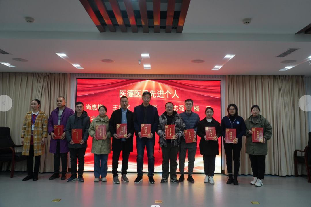 最后,党委书记董均同志代表院党委向一年来为守护群众生命健康不畏艰辛、勇毅坚守的全院干部职工表示崇高的敬意和衷心的感谢。他强调,要强化政治引领,把学习贯彻党的二十大精神作为当前和今后一个时期的重要政治任务,统一思想、凝聚共识、提升站位,以高质量党建引领医院高质量发展,通过加强人才梯队培养引进开发、打造特色明显的优势学科群、加快推进信息化建设、持续提升教学科研能力、不断优化服务流程等,多举措深化医院内涵建设、打造群众满意医院,以实际行动推动党的二十大精神在医院落地生根、见行见效!