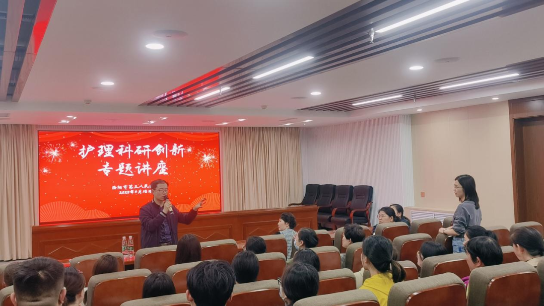 为进一步提升护理人员的科研创新能力,4月16日上午,洛阳市第三人民医院护理部邀请河南省人民医院呼吸重症监护室护士长王海播、河南省医药卫生报护理创新评委、驼人杯护理创新办公室评委于丹老师莅临我院开展“护理科研创新”专题学术讲座。尽管是周末,但仍挡不住大家学习的热情,共计百余护理人员参加了本次讲座。