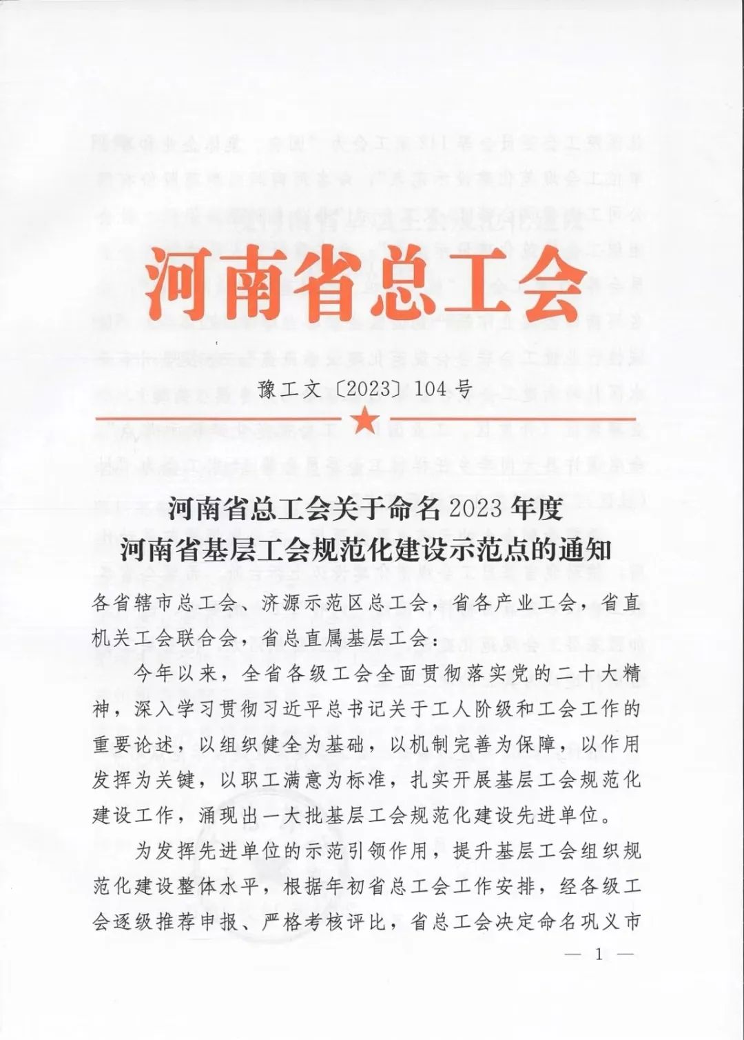 近日,从市总工会传来喜讯,洛阳市第三人民医院被河南省总工会授予“2023年度河南省基层工会规范化建设示范点”荣誉称号,这是洛阳市唯一一家获此殊荣的医院。