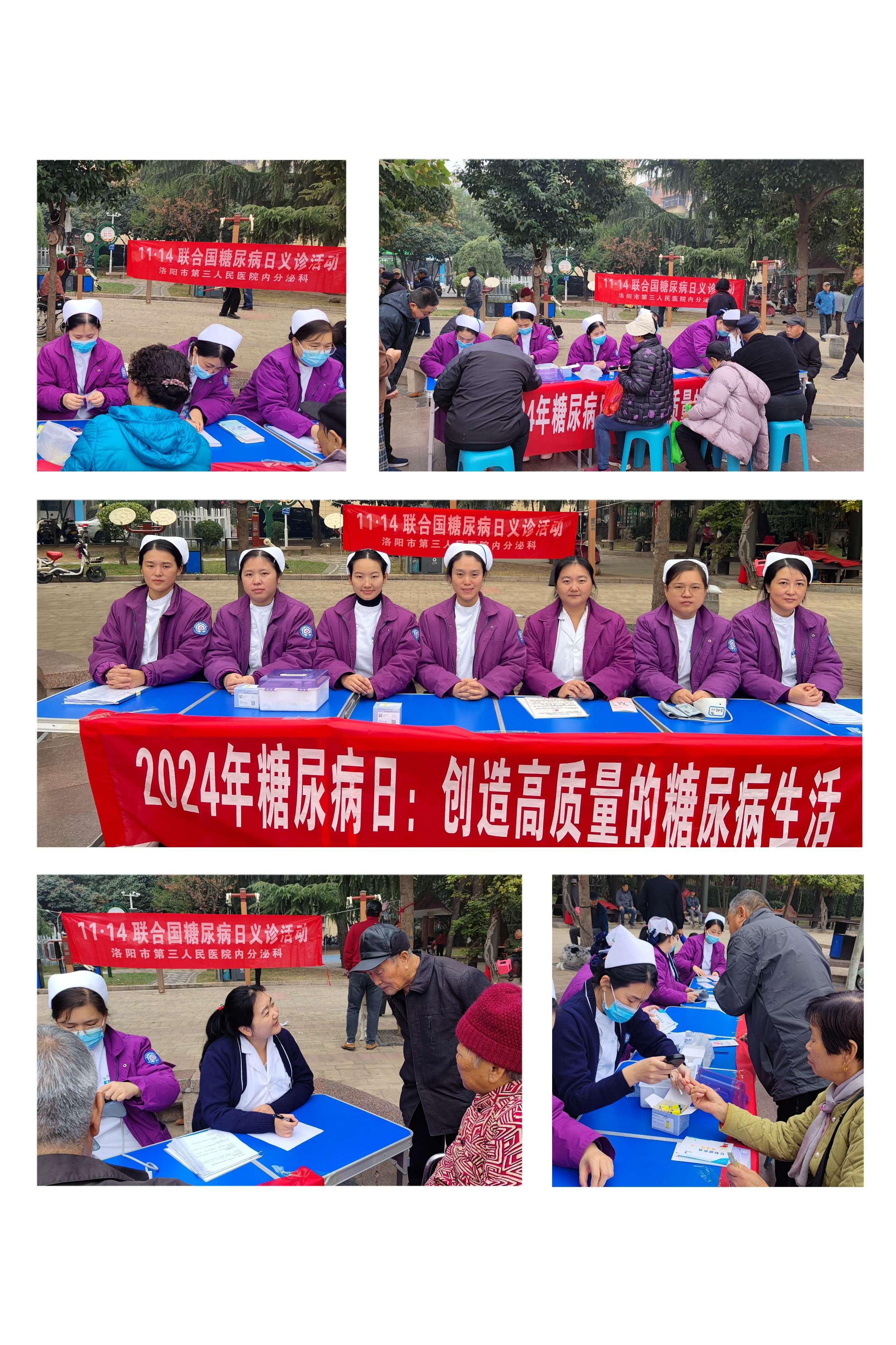 糖尿病不仅会影响到患者的身体健康,也对心理上的幸福感产生影响。为动员全社会共同关注糖尿病,提高全民健康水平,将患者的整体幸福感置于糖尿病护理的核心,推动改变,以改善糖尿病患者的生活。洛阳三院内分泌科于11月11日在瀍河区龙泉广场组织开展“糖尿病与幸福感”主题义诊活动,宣传糖尿病防治知识。