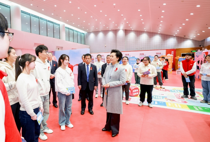 主题宣传活动前,彭丽媛等参观了“美好青春我做主”红丝带青春校园行十年历程展示,了解京津冀高校防艾宣传工作成效,同参加校园防艾宣传活动的大学生亲切交流,慰问医务人员、志愿者等,勉励大家继续携手努力,共同参与艾滋病防治工作,传递更多健康向上的防艾正能量,让艾滋病远离校园。
