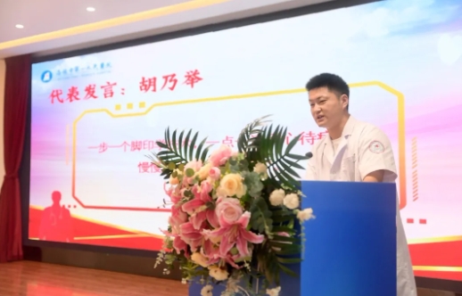 在先进事迹分享环节,四位优秀医师代表依次登台,深情讲述他们的从医感悟与动人故事。
