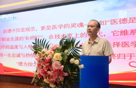 党委委员、副院长邢付强宣读了《医务人员职业道德准则(2025年版)》,进一步强调了医务人员的职业规范与道德要求。会议还播放了医德医风典型事迹短片,以真实案例生动诠释“敬佑生命、甘于奉献”的崇高医者精神。