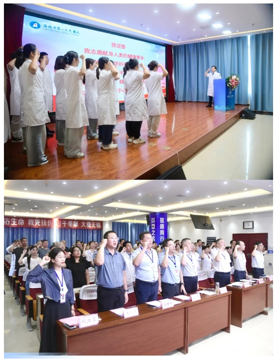 随后,新进医师代表在领誓人赵志鸿同志的带领下庄严宣誓,表达了为守护人民健康、献身医疗事业奋斗终身的坚定信念。