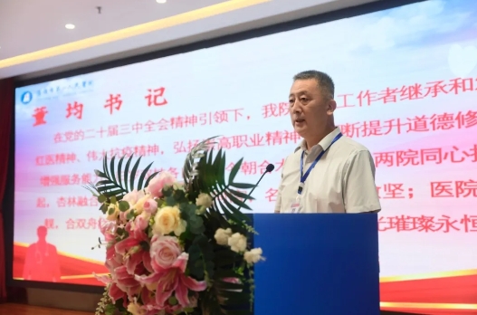 党委副书记、院长常书锋发表了热情洋溢的致辞。他首先代表医院领导班子向全体医师致以节日的问候和诚挚的感谢,并强调,站在医院融合发展的新起点上,全院医师要始终以“德馨于行,技精于勤”为行动指南,持续弘扬崇高职业精神,不断提升道德修养,永葆医者仁心,精进专业技能,把提升医疗卫生服务质量、全心全意为人民健康服务作为职业追求,推动医院业务发展迈向更高水平。
