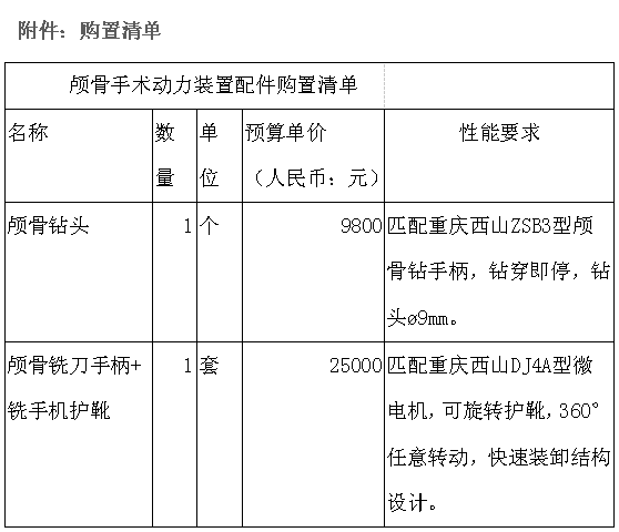 洛阳市第三人民医院招标采购中心根据使用科室的要求,拟采购颅骨手术动力装置配件,欢迎有供货能力和供货资质的供应商踊跃参加。