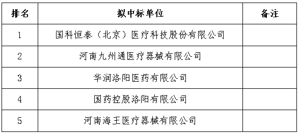 洛阳市第三人民医院医用耗材集中配送企业遴选项目按规定程序进行开标、评标,现就本次项目的评标结果公布如下: