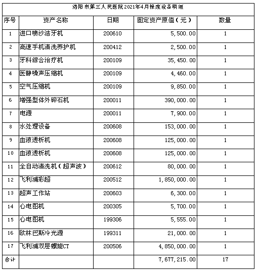 一、项目名称:洛阳市第三人民医院报废医疗设备处置项目