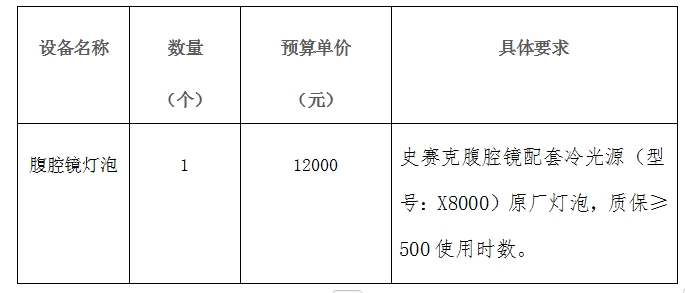 我院科室史赛克腹腔镜配套冷光源(型号:X8000)灯泡,目前使用寿命已到期,无法满足手术需求,需要更换史赛克原厂灯泡,采购清单如下: