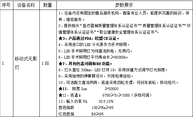 洛阳市第三人民医院因业务开展,需要采购移动式无影灯1台,为充分了解市场情况,现发布调研公告,特邀请具备条件的相关企业积极提交相关资料。具体事项如下: