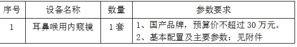 洛阳市第三人民医院因业务开展,需要采购耳鼻喉用内窥镜1套,为充分了解市场情况,现发布调研公告,特邀请具备条件的企业积极提交相关资料。具体事项如下: