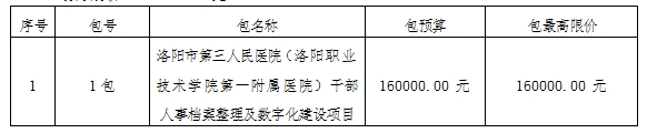 2、项目名称:洛阳市第三人民医院(洛阳职业技术学院第一附属医院)干部人事档案整理及数字化建设项目(二次)