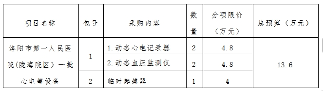 洛阳市第一人民医院(陇海院区)现公开采购一批心电等设备,具体事宜公告如下。