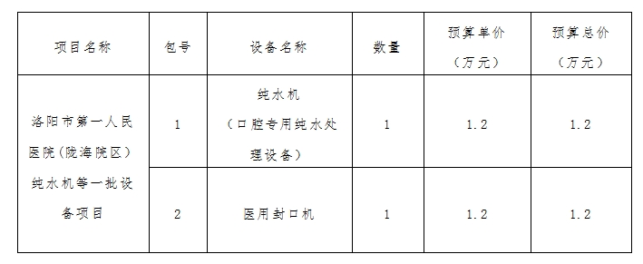 洛阳市第一人民医院(陇海院区)现公开采购纯水机等一批设备,具体事宜公告如下。