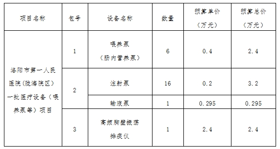 洛阳市第一人民医院(陇海院区)现公开采购一批医疗设备(喂养泵等),具体事宜公告如下。