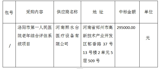 2、采购项目名称:洛阳市第一人民医院老年综合评估系统项目