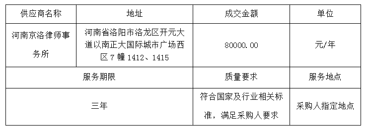 2、采购项目名称:洛阳市第一人民医院招聘法律顾问服务
