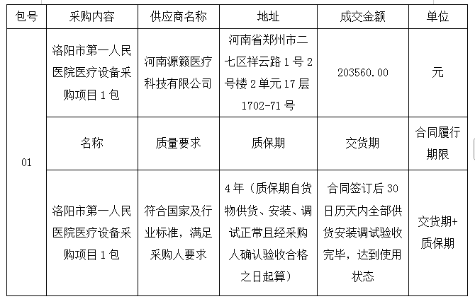 3、包名称:洛阳市第一人民医院医疗设备采购项目1包